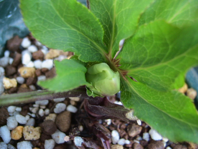 小さな小さなツボミが、中に埋まって「もう少ししたら顔を出すから、まだ待っててね~!」と